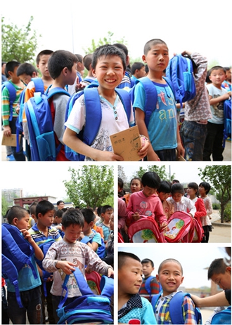 圖:拿到新書(shū)包和文具的孩子們臉上洋溢著開(kāi)心的笑容