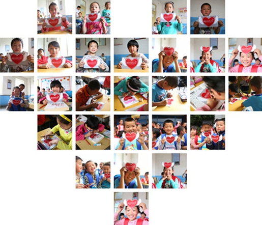 圖:志愿者們與平山希望小學(xué)、天井希望小學(xué)的孩子們合影
