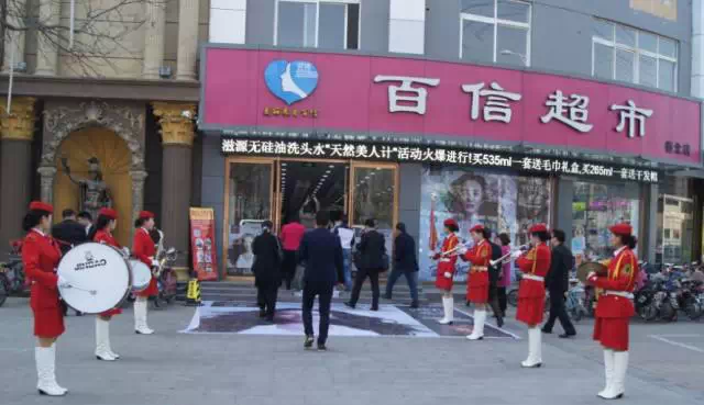 大拱門,LED,以及店外櫥窗,地貼,甚至鑼鼓隊都將整個店外的氣氛烘托起來,熱鬧就是聚集人氣的基礎。