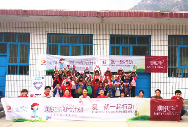 2015年5月2日,“美膚寶陽光計劃”啟動儀式在北國中華北店隆重舉行。這次啟動儀式由美膚寶品牌事業營銷中心石家莊北國系統主辦,石家莊百忍商貿有限公司協辦,共同為石家莊市貧困地區留守兒童捐贈助學物資。美膚寶北國中華北店總經理王維霞女士、北國中華北店采購經理楊晶晶女士和石家莊百忍商貿集團總經理張瑞麗女士等出席此次儀式。啟動儀式現場,愛心書籍捐贈處熱鬧紛呈,北國員工和消費者們紛紛為孩子們送出自己的一份愛心。5月5日,陽光計劃志愿者們走進石家莊市平山縣北冶鄉塔崖小學,為50名孩子送去陽光書包、文具用品等助學物資。