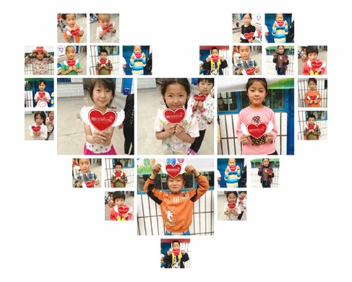 圖:孩子們排成心形,高舉寫滿心愿的愛心卡,愿每一個天使都美夢成真