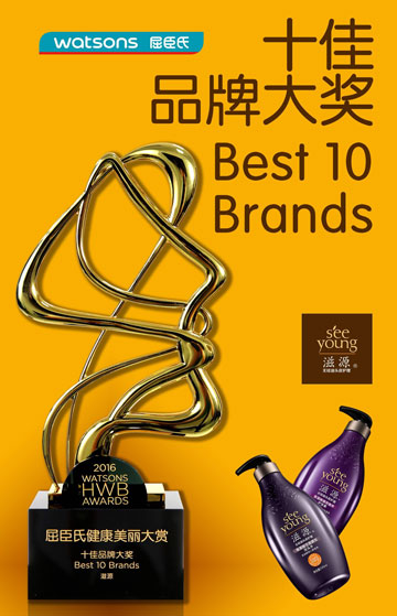 不負眾望,榮獲2016屈臣氏“十佳品牌”大獎
