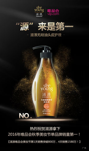此次,滋源借勢全球最大的特賣電商唯品會,通過唯品會2億會員粉絲群體,以更高品質的頭皮護理體驗,在奪得2016唯品會秋季美妝節單品牌銷量第一的同時,也獲得了更多消費者的正面口碑,滋源“無硅油頭皮護理”的健康洗護理念更加深入人心。