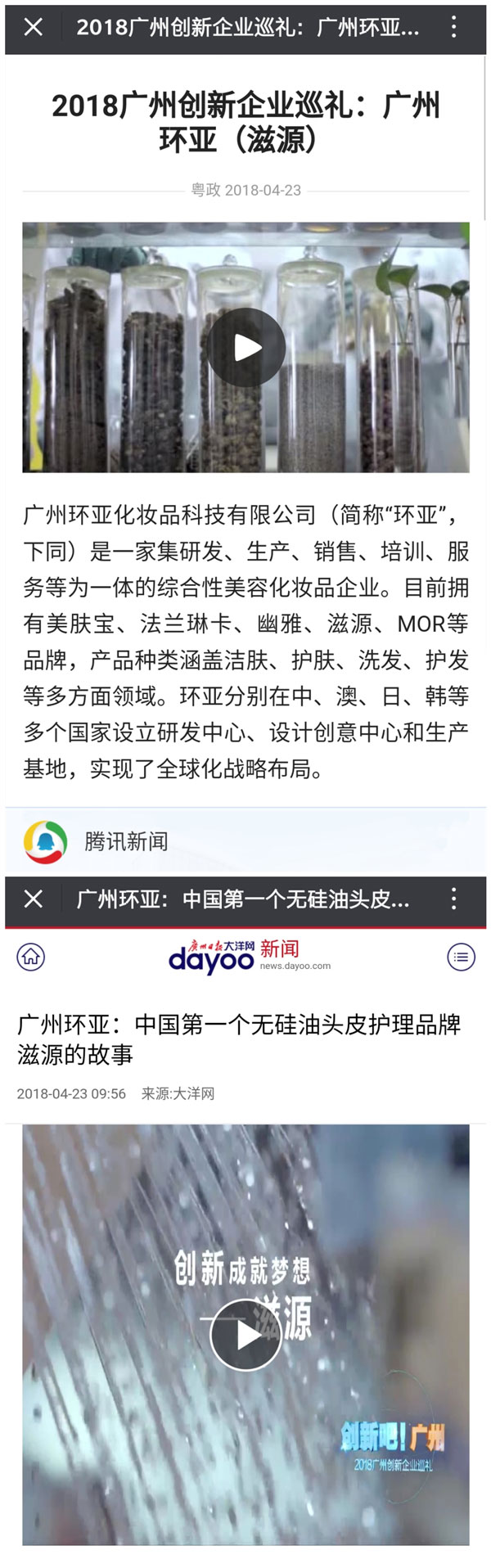 2018年4月,環亞集團旗下重點戰略品牌滋源,以中國第一個無硅油頭皮護理品牌之姿,成為2018年廣州創新企業巡禮的標桿。這份榮譽既是對滋源品牌創新實力的肯定,也意味著滋源已成長為城市經濟發展的中堅力量,代表中國品牌參與國際化競爭的重任。