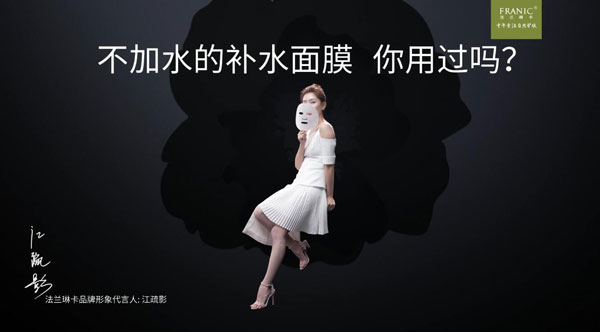 2018年4月26日,歷時多月的法蘭琳卡“不加水”廣告大片在央視全球首播。該廣告由中國創意第一人葉茂中策劃、氣質女神江疏影傾情演繹,以簡單的“不加水”廣告詞突出創意重點,全面詮釋法蘭琳卡“不加水”3.0面膜的產品核心。