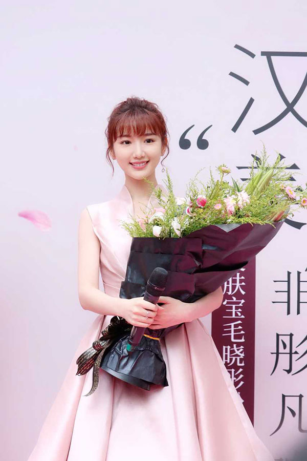 代言人毛曉彤穿著小粉公主裙驚艷亮相
