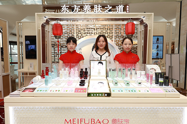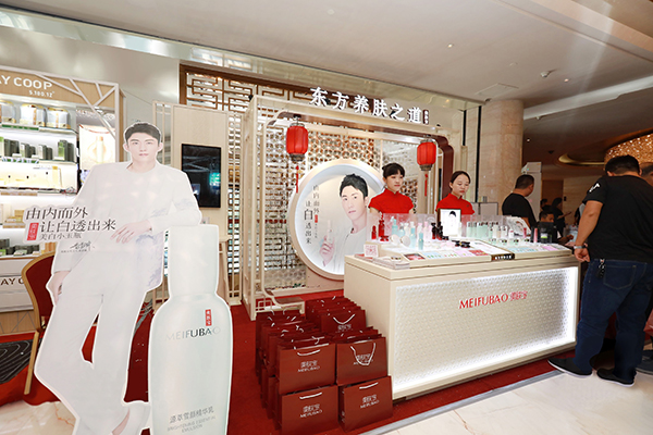 展位白色典雅的陳列布置,身著紅色旗袍的禮儀介紹,極具東方美學的美膚寶在眾多展位中更是脫穎而出,吸引了不少觀展商咨詢觀賞。遵循“君臣佐使”的組方配伍原則,講究“平衡·調·養”的護膚方式,美膚寶倡導的品牌理念正是當下注重健康養生的現代人所追捧的。