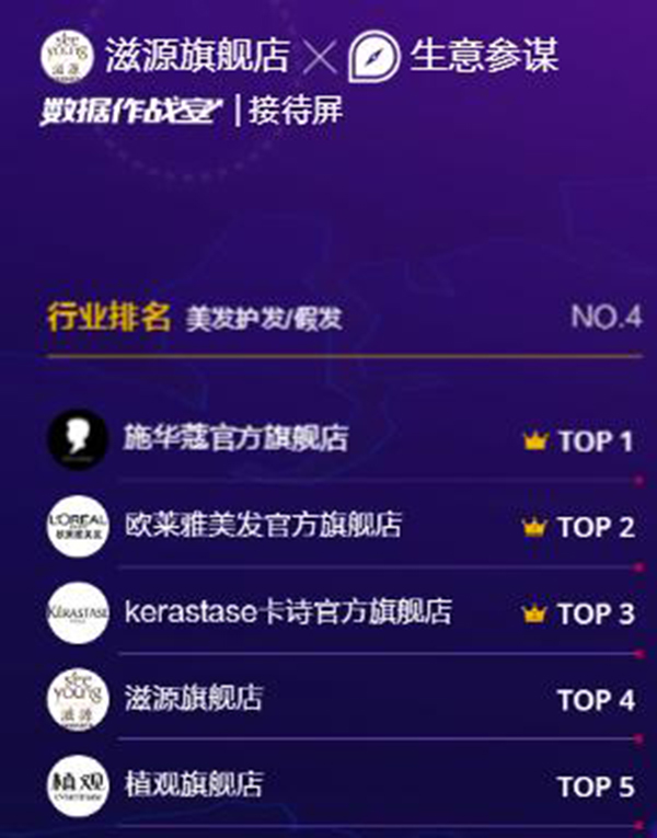 △2018雙十一行業(yè)TOP4,滋源整體排名國(guó)貨第一