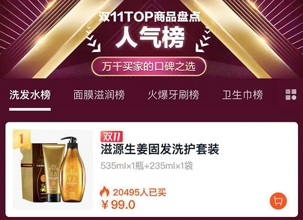 銷量就是實(shí)力,期待滋源在衛(wèi)冕雙11全網(wǎng)洗護(hù)發(fā)品類國(guó)貨冠軍之后的下一次飛躍。