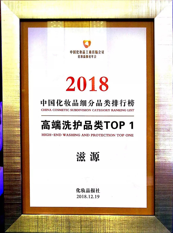 *2015年-2018年滋源連續四年榮獲中國高端洗護品類TOP1