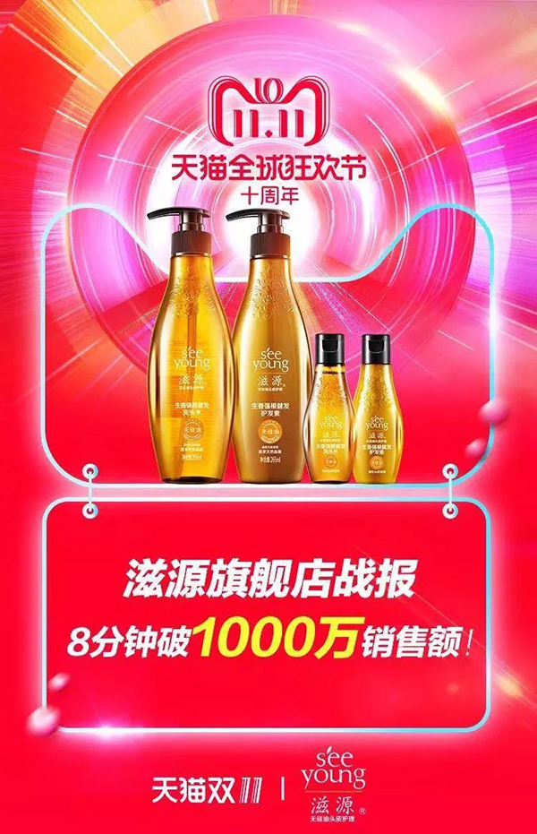 2018年天貓雙十一全球狂歡節,線上線下銷量均過億,不到8分鐘銷售金額突破千萬大關,滋源以高質量的產品贏得銷量的爆發式增長。