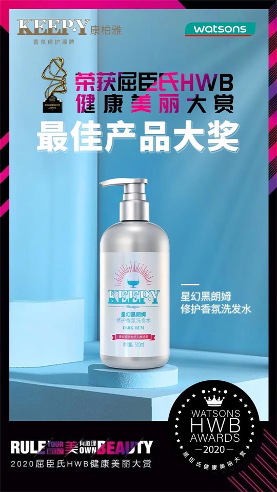此次摘得屈臣氏HWB大獎的KEEP·Y康柏雅星幻黑朗姆修護香氛洗護系列產品即是其中代表性力作,不僅以三大黑科技強化青春護發、滋養修護特性,更獨家采用的Hurry-Dry快干技術打造快干輕盈秀發,優化修護類洗發產品的使用體驗,令消費者耳目一新的同時正中需求,因而備受年輕消費者青睞關注。