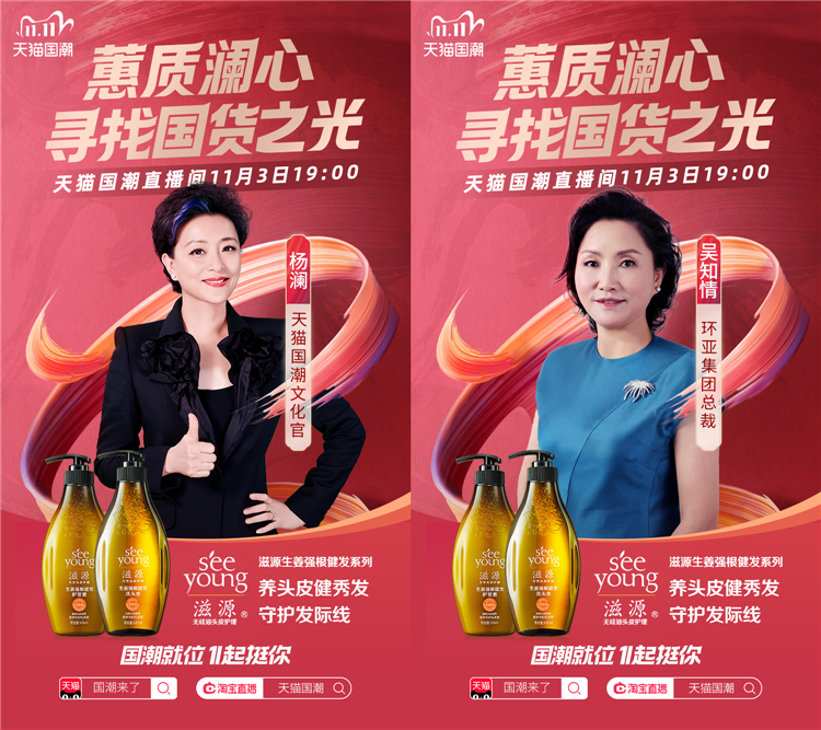 活動(dòng)中,環(huán)亞集團(tuán)總裁吳知情聯(lián)合天貓國(guó)潮文化官楊瀾直播帶貨,為國(guó)貨背書,宣揚(yáng)滋源品牌力,觸達(dá)億級(jí)高粘度粉絲,從而強(qiáng)勢(shì)提振品牌聲量,升華品牌質(zhì)感!
