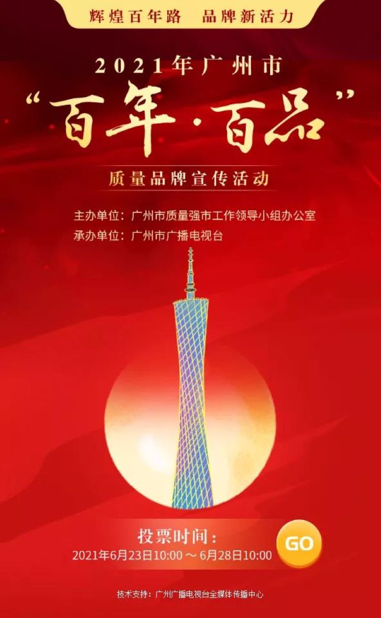 據介紹,此次廣州市“百年•百品”評選活動是在中國共產黨成立100周年之際推出的品牌系列活動,由廣州市質量強市辦主辦、廣州市廣播電視臺承辦,致力于推介建黨百年來,立足本土的一百個具有廣泛代表性,在全市、全省、全國乃至全球具有影響力的廣州品牌。