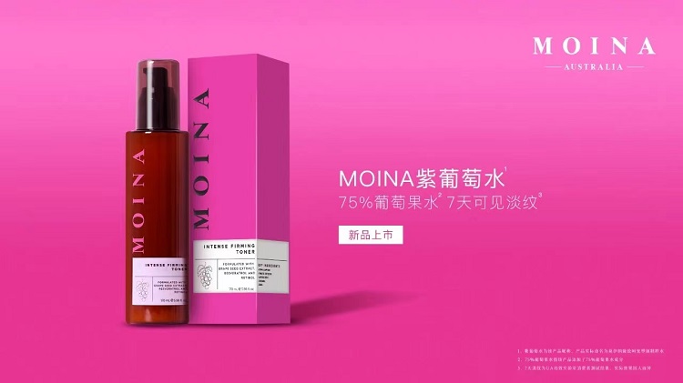 品牌定位升級(jí):品牌全新定位為“抗氧緊致”,新slogan為“我的肌膚緊致專(zhuān)家”,從內(nèi)至外強(qiáng)調(diào)MOINA品牌葡萄抗氧的堅(jiān)定信心。