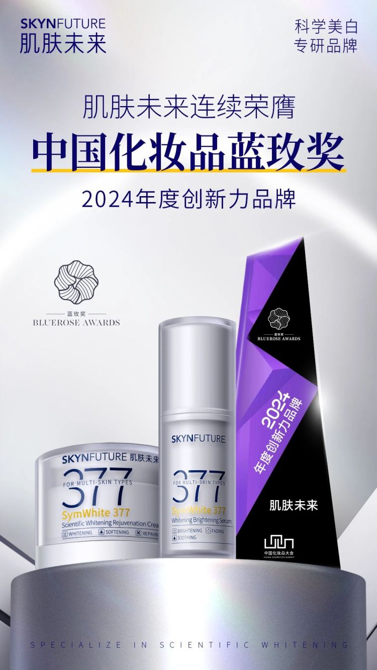 2024年7月,肌膚未來SKYNFUTURE在中國化妝品大會(huì)上連續(xù)兩年蟬聯(lián)被譽(yù)為中國化妝品界的“奧斯卡”的藍(lán)玫獎(jiǎng)「年度創(chuàng)新力品牌」。