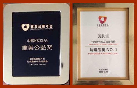 當(dāng)晚,備受行業(yè)期待的“中國化妝品店百強(qiáng)連鎖榜”和“中國化妝品品牌榜暨細(xì)分品類三甲”排行榜兩大榜單正式公布,引發(fā)全場關(guān)注。這一榜單由《化妝品報(bào)》采編人員和廣告、發(fā)行人員歷經(jīng)數(shù)月,通過各種渠道調(diào)查匯總而成。美膚寶強(qiáng)勢上榜,榮鼎“中國化妝品唯美公益獎(jiǎng)”和“中國化妝品品牌排行榜防曬品類NO.1”兩項(xiàng)大獎(jiǎng)!