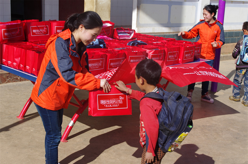 美膚寶陽光計劃從2013年10月份開始,已跟隨美膚寶變形計走過了三站,為近千名山區兒童送去了愛心和溫暖。這一次美膚寶陽光計劃志愿者又來到了云南省寧蒗縣跑馬坪鄉羊安山完小。