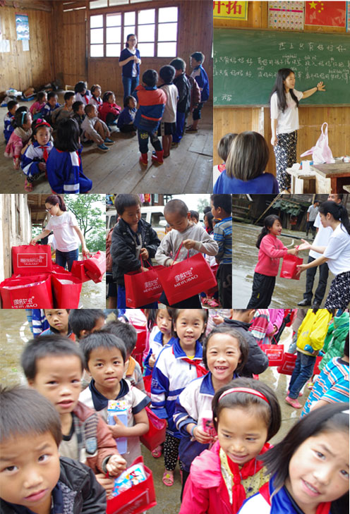美膚寶陽光計劃志愿者從省到縣至鎮下鄉上村里足足歷時兩天,一路顛簸。來到別鳩,呈現在眼前:素凈的小山村、勞作的苗家人,地坪里嬉戲的孩童,給貧瘠的土地平添了層淡淡的幸福感。