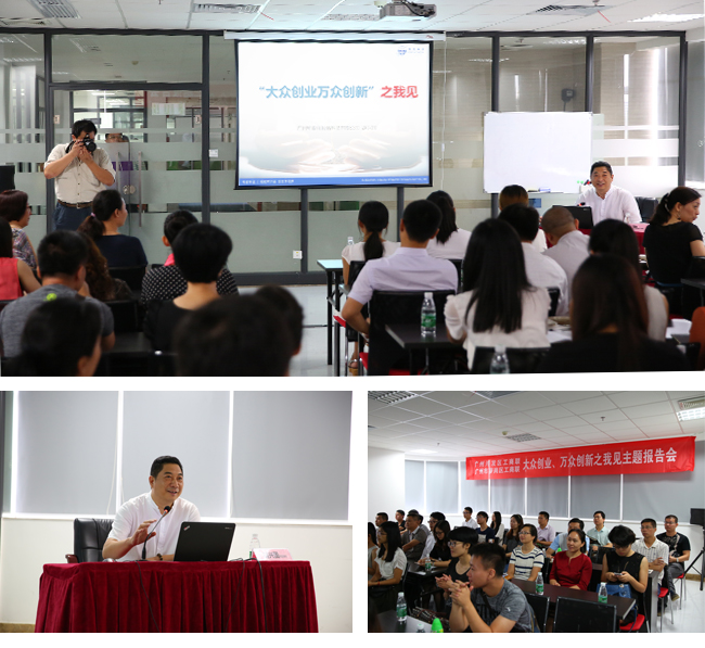 7月10日,在廣州蘿崗區(qū)工商聯(lián)秘書長唐慧帶領下,廣州開發(fā)區(qū)和蘿崗區(qū)工商聯(lián)企業(yè)領導一行三十余人乘專車蒞臨環(huán)亞,認真學習并聽取環(huán)亞集團董事長胡興國先生主持的“大眾創(chuàng)業(yè)、萬眾創(chuàng)新”主題報告會。