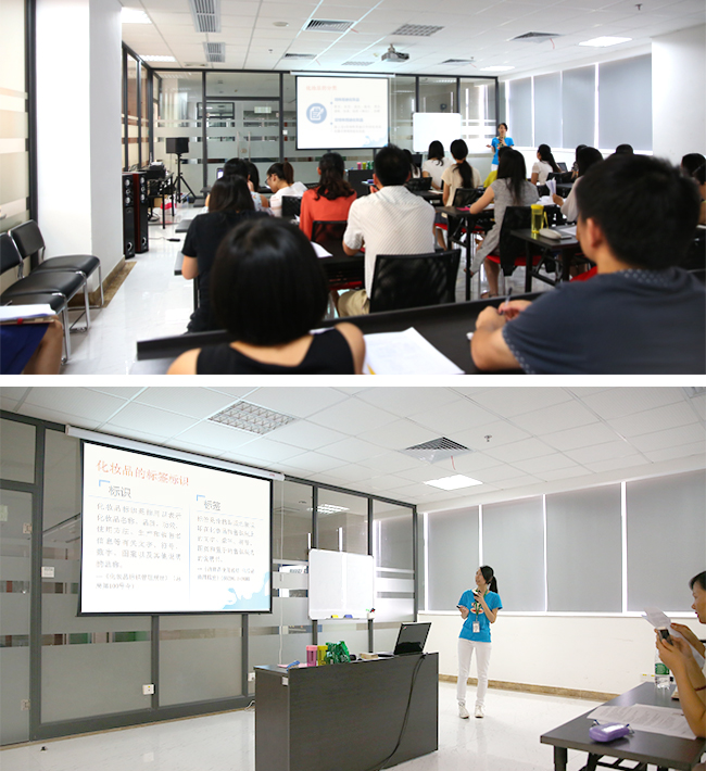 近年來,國家食品藥品監督管理局陸續發布有關化妝品注冊備案、生產許可、標簽管理、已使用原料名稱目錄等方面的法規文件。為確保環亞及時跟進政府規范,品質管理部開展化妝品標識標簽要求的基礎培訓,并對文案評審流程作出規范說明。課堂一問一答環節,陳經理從自身工作實踐出發,對照相關法規條文,生動解答每一位學員在實際工作中遇到的難題。