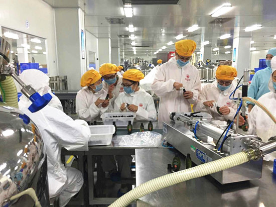 觀摩學習之余,學員們也化身車間里的“小黃人”,投身到生產線上去體驗了一次流水線的運作。小伙伴們身手敏捷,干勁十足,加上高度默契的配合,整條外包裝的生產線有條不紊地運轉。一個下午結束,大家看著自己親手的包裝的產品,幸福感滿滿。