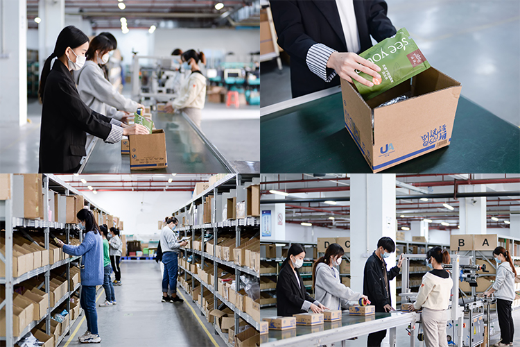 與此同時,為了滿足訂單生產、發貨需要,環亞后臺員工迅速響應,積極支援工廠一線的貨品打包工作,以硬核擔當推動“雙十一”工作有序開展。截至目前,已有上百位后臺員工進入工廠,加班加點撲在工廠一線。一個個忙碌的身影活躍在貨品之間,彰顯著昂揚向上的環亞“勤誠恒”精神風貌。