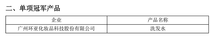 近日,廣東省工業和信息化廳發布《關于2022年省級制造業單項冠軍企業(產品)通過名單的公示》,環亞名列其內,是唯一一家入選“單項冠軍產品”的化妝品企業。