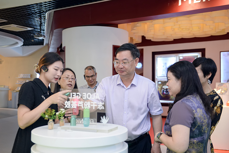 調研組一行考察了廣東環亞美容化妝品博物館和環亞企業館,就企業發展的各項問題進行了交流探討,并對環亞在化妝品行業持續深耕所取得的發展成就表示贊賞,對環亞在產品品質上的精益求精表示肯定。