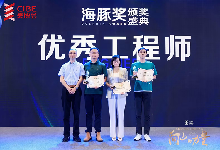 ??毛善巧(右一)獲得第六屆海豚獎“優(yōu)秀工程師獎”。