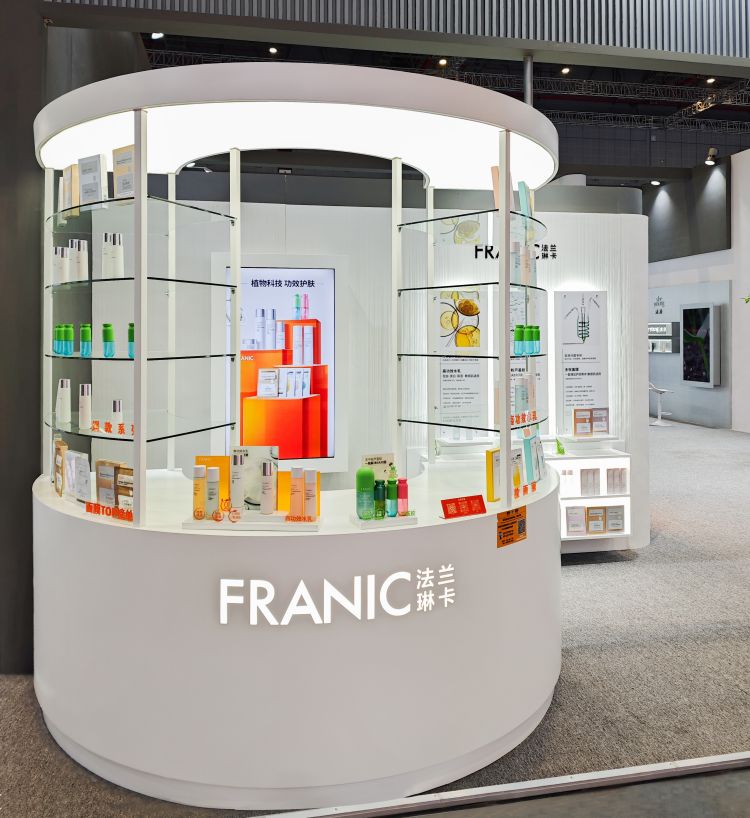 定位于“植物科技功效護(hù)膚”的法蘭琳卡FRANIC是環(huán)亞集團(tuán)多元化品牌矩陣布局中的重要一員,此次參展以功效化、專業(yè)化和年輕化為亮相關(guān)鍵詞。法蘭琳卡FRANIC在參展前完成了美學(xué)升級(jí),此次更是以煥然一新的形象出現(xiàn)在展會(huì)現(xiàn)場(chǎng)——提取器皿形態(tài)為標(biāo)識(shí),彰顯強(qiáng)烈的實(shí)驗(yàn)室風(fēng)格,搭配明亮張揚(yáng)的品牌色橙色,力求向消費(fèi)者傳達(dá)法蘭琳卡的全新美學(xué)態(tài)度。