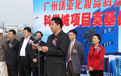 2006年12月11日,廣州環(huán)亞化妝品科技有限公司科學城項目奠基儀式在青翠的牛佛公山下隆重舉行。環(huán)亞集團總裁胡興國先生率環(huán)亞員工,與遠道而來的韓國合作伙伴及各協(xié)作單位的嘉賓,歡聚在科學城項目用地現(xiàn)場,為環(huán)亞項目揮鍬奠基。