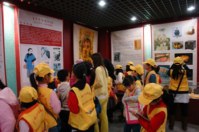 在解說(shuō)員的指引下,小記者們首先來(lái)到了“美容化妝品博物館”,面對(duì)著 祖國(guó)博大精深的美容文化,面對(duì)著體現(xiàn)了古人生活一面的物品,同學(xué)們不時(shí)嘖嘖稱(chēng)贊。看著具有悠久歷史 的傳統(tǒng)美容化妝文化知識(shí)、習(xí)俗,以及歷朝歷代古代人使用的各式各樣化妝用具小記者們紛紛對(duì)此產(chǎn)生了濃厚的興趣,不時(shí)向我館解說(shuō)員詢(xún)問(wèn),“姐姐,這個(gè)銅鏡怎么有五個(gè)山的啊?”“這個(gè)鴨子是干什么用的呢?”“這些牙粉是用什么做的呢?”在得到回答的同時(shí),他們不停地拿出筆、本進(jìn)行記錄。