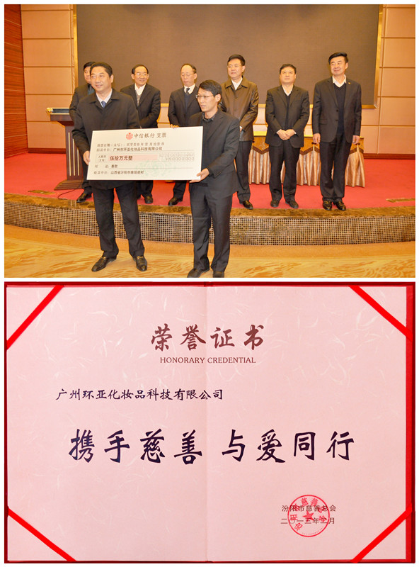 作為民族企業(yè),環(huán)亞人始終肩負(fù)著勇于擔(dān)當(dāng)、振興民族的社會(huì)責(zé)任感。自創(chuàng)辦以來熱心公益事業(yè),為數(shù)以萬計(jì)的孤殘弱勢群體奉獻(xiàn)愛心。環(huán)亞今后將繼續(xù)關(guān)注公益慈善事業(yè),在國家需要企業(yè)支持的時(shí)候,在社會(huì)需要企業(yè)幫助的時(shí)候,在弱勢群體需要企業(yè)伸出援手的時(shí)候,凝聚愛的力量,用實(shí)際行動(dòng)傳遞社會(huì)正能量,構(gòu)筑民族美好未來!