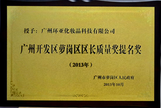 2012年,環亞集團在區質量技術監督局的支持和幫助下,開始引入卓越績效模式,并在實施過程中學習標準,以標準為依據,堅持持續改善,不斷夯實內部管理、提升公司整體管理水平。2013年初,環亞正式申報蘿崗區區長質量獎,歷經文件評審、現場評審和最終答辯,2013年10月12日,榮獲“2013年區長質量獎提名獎”。