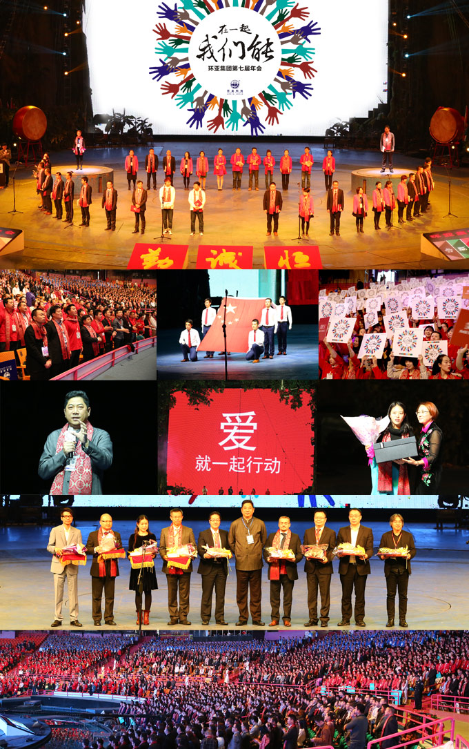 2014年12月9日,一場以“TOGETHER WE CAN”為主題的環亞第七屆誓師及頒獎盛典在廣州長隆大劇院華麗開啟。環亞集團全體員工、來自全國各地的5000多名市場銷售精英和經銷商、供應商合作伙伴共聚一堂,一同分享環亞歷經25年的點滴,見證旗下品牌翻開新的歷史篇章。