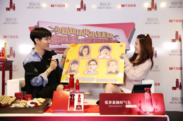 At 21:00 on 21st October, Meifubao cooperated with Xiao Xiao (a popular Let’s Talk player with speechcraft) at Tmall Live broadcast Studio and uncover the mysterious veil of Meifubao new product-flower nutrient skincare product. When the live broadcasting was started only for 5 minutes, 300000 visitors accessed to Meifubao Tmall Live broadcast Studio. At the day of such activity, Meifubao Tmall live broadcasting topic has attracted more than 2 million visitors to read and discuss at Sina blog. Exposure of such high frequency and large range just aimed at this new product-Meifubao flower nutrient skincare lotion. It is said that, this is the best age advocating the beauty of face without make-up, seeking face without make-up has become a trend. Meifubao flower nutrient skincare series is popular and brings the fashion of face without make-up in the skincare field!