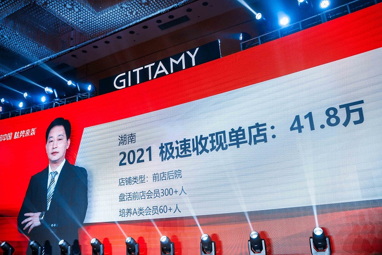 Liu Ze, the head of the Gittamy brand, announced the gratifying achievements of the past year at the beginning of the summit. Through the "Hundred People with One Million" plan, the sales volume of Gittamy in 2021 increased by 356% year-on-year. Among the 1,000 cooperative stores, 300 achieved annual sales of 1 million, and 100 pilot stores achieved annual profit of 1 million! It is estimated that in 2022, 1,000 companies will reach the annual sales target of 1 million+!