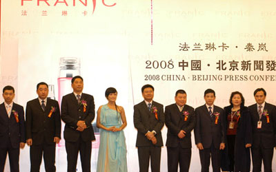 In the afternoon of 6th, December, Franic holds a “2008 China Beijing News Conference” in the five-star luxury banquet hall of Jingdu Xinyuan Hotel in Beijing. Qin Lan wears a blue crystal color skirt and gorgeously appeared as the spokesperson for the international famous brand – Franic for the first time.