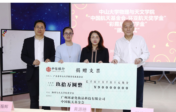 The "China Aerospace Foundation - Uniasia Space Scholarship" was established by the China Aerospace Foundation and donated by Uniasia Group to reward students with excellent academic performance and comprehensive development in the School of Physics and Astronomy of Sun Yat-sen University of aerospace direction, and encourage students to work hard in learning, innovate boldly, forge ahead arduously, and become a pillar of the aerospace industry.